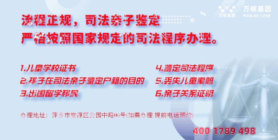 萍乡个人隐私亲子鉴定办理地址:萍乡市安源区公园中路06号(如需办理,需提前预约)预约电话:4001789498,服务地区包括:安源区、湘东区、莲花县、上栗县、芦溪县等周边城市。